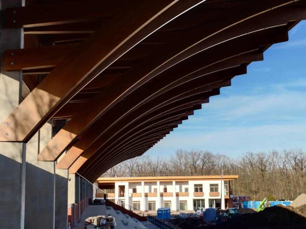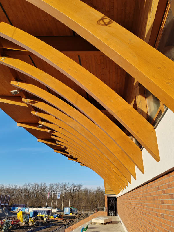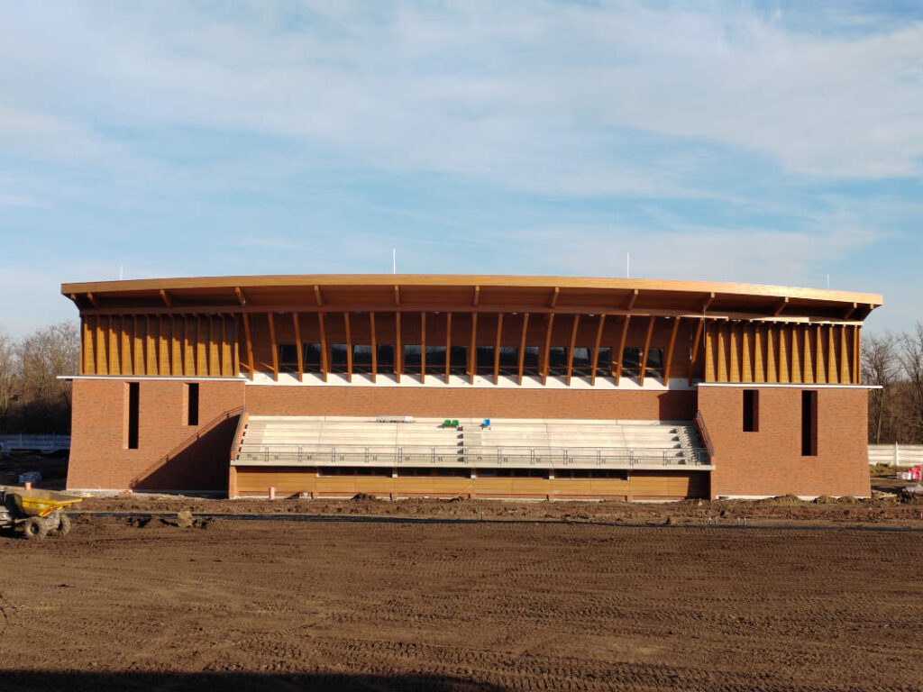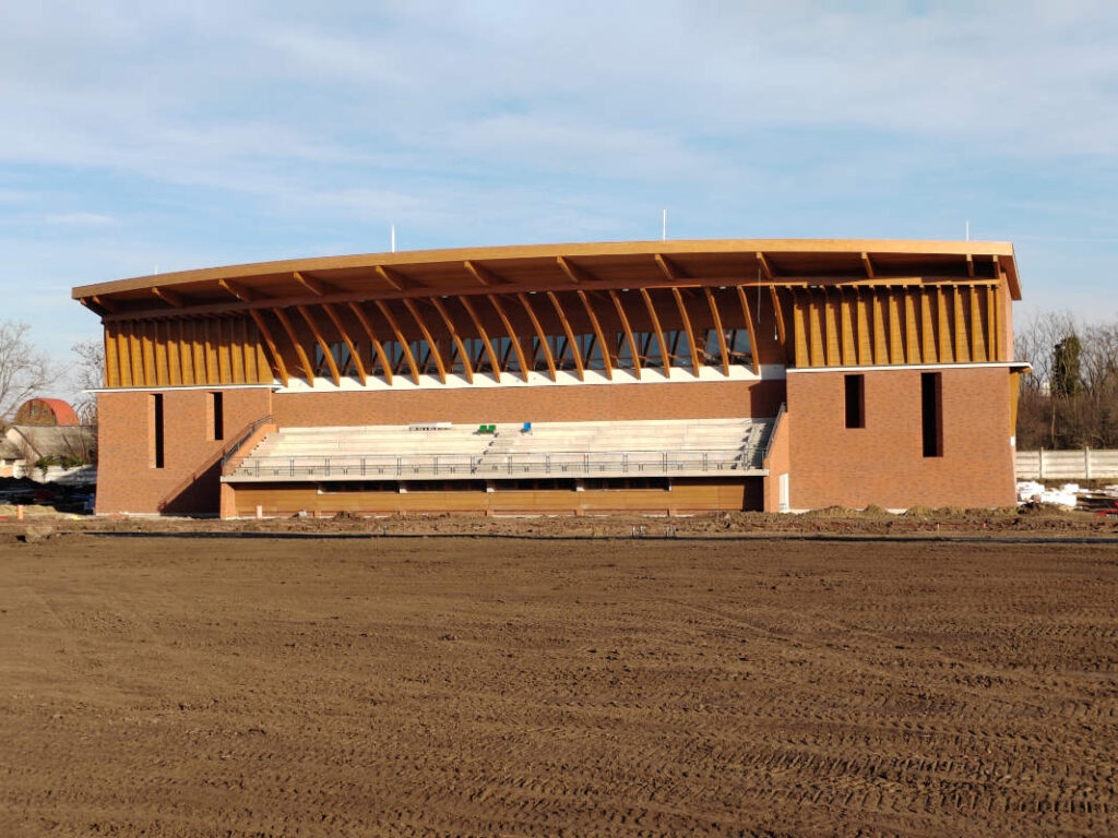 Közel 5000 m2 alapterületű, három épületből álló komplexum fogadja az új nemzedékek sportolóit. A kivitelezéssel a labdarúgó pályán kívül, lelátóval, fedett műfüves pályával, öltözővel, futópályával, kondi-, asztalitenisz-, birkózó- és squashteremmel, edzőtábor tartásához szükséges szálláshelyekkel gazdagodott Karcag városa. Az íves, ragasztott fatartós épületszerkezetek, az 1800 m2-nyi nyers tégla homlokzatburkolat az arculattervezőként közreműködő Túri Attila alkotásai, ezek teszik megjelenésében egyedivé a létesítményt.